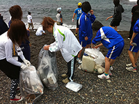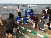 礼文島にて、ジュニアバレーボールスクールを開催し、その後、ビーチクリーン活動を実施しました。