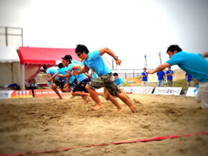 今年で第3回を迎え、7月20,21日と2日間、横須賀のうみかぜ公園に砂を敷き 詰めて、ビーチバレー大会を中心としたイベントを開催しました。20日は、ビー チバレー一般大会と、ゲストにプロライフセーバーの飯沼誠司さんを迎えて、 ビーチフラッグス大会を開催。さらに、アーティストによるライブも行い、今年 もハワイからCarrell Haruyoさんにもお越しいただき、フラダンスとライブの融 合でステージを盛り上げていただきました。