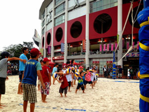 子供バレー教室では、小学生にもならない小さい子も参加してくれて、ボールを使ったリレーなど、みんなで楽しめるビーチバレー教室となりました。